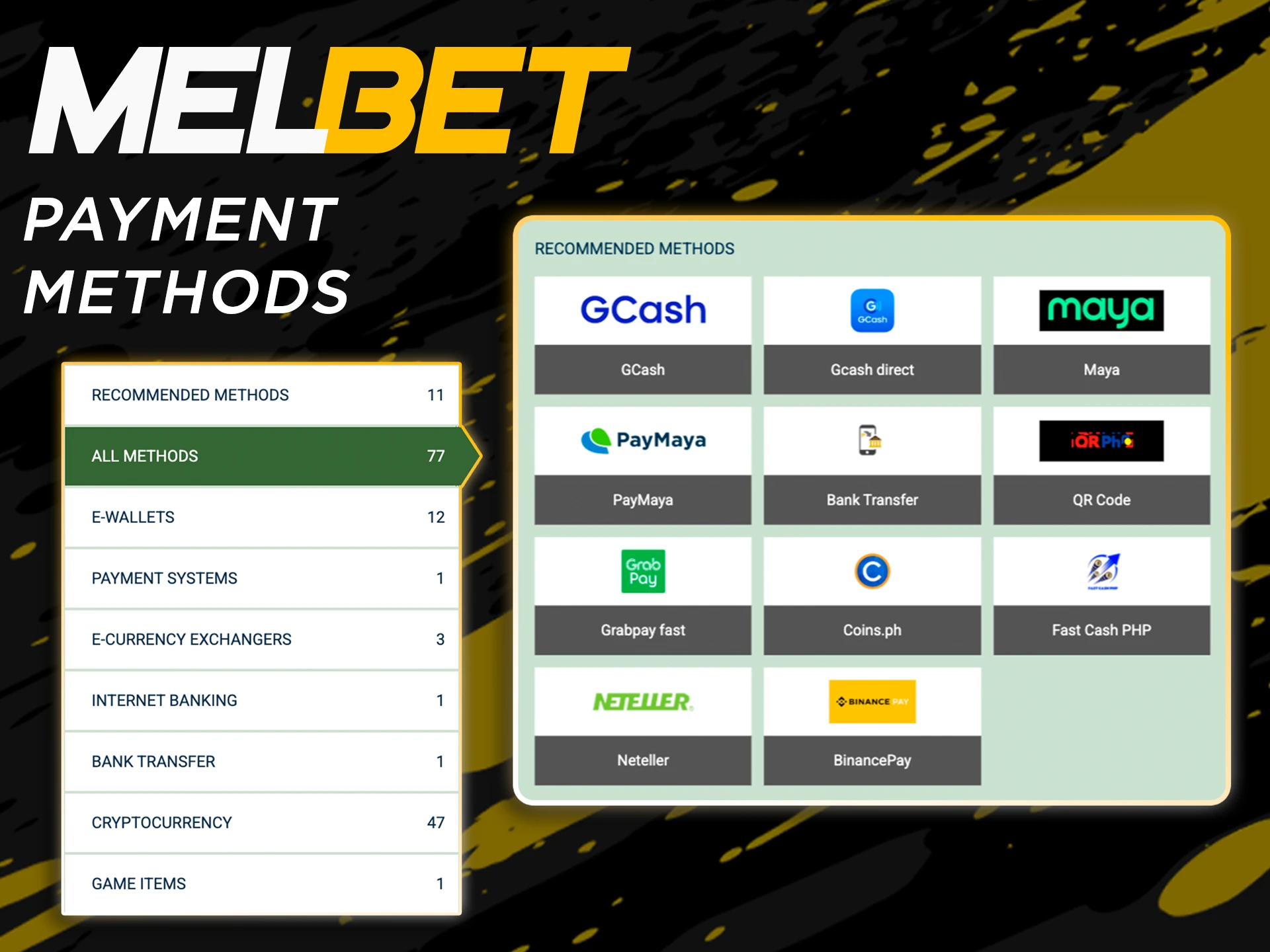 MelBet provides a wide range of methods for deposits and withdrawals. Here are the most popular options: